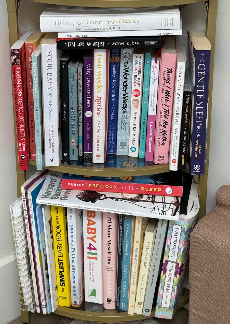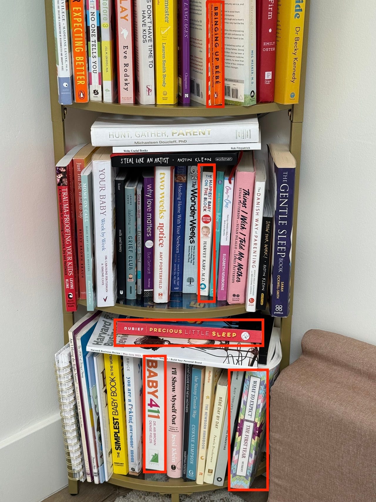 "BRINGING UP BÉBÉ" [top shelf, Bebe Day by Day is on the bottom]