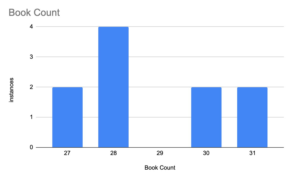 This one counted 28 books on the first try, 19/20 of the titles were correct, 5/6 maybes were correct. Much better.