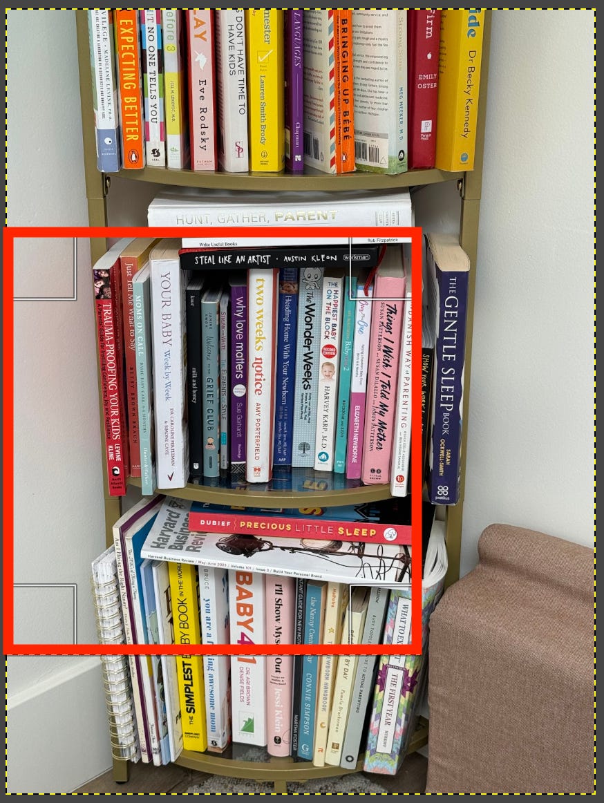 The hallucinations are really interesting - it says it’s guessing because of the “description or color” of the book, but I wonder if it isn’t just tossing in a few more books that might appear on a shelf like this.