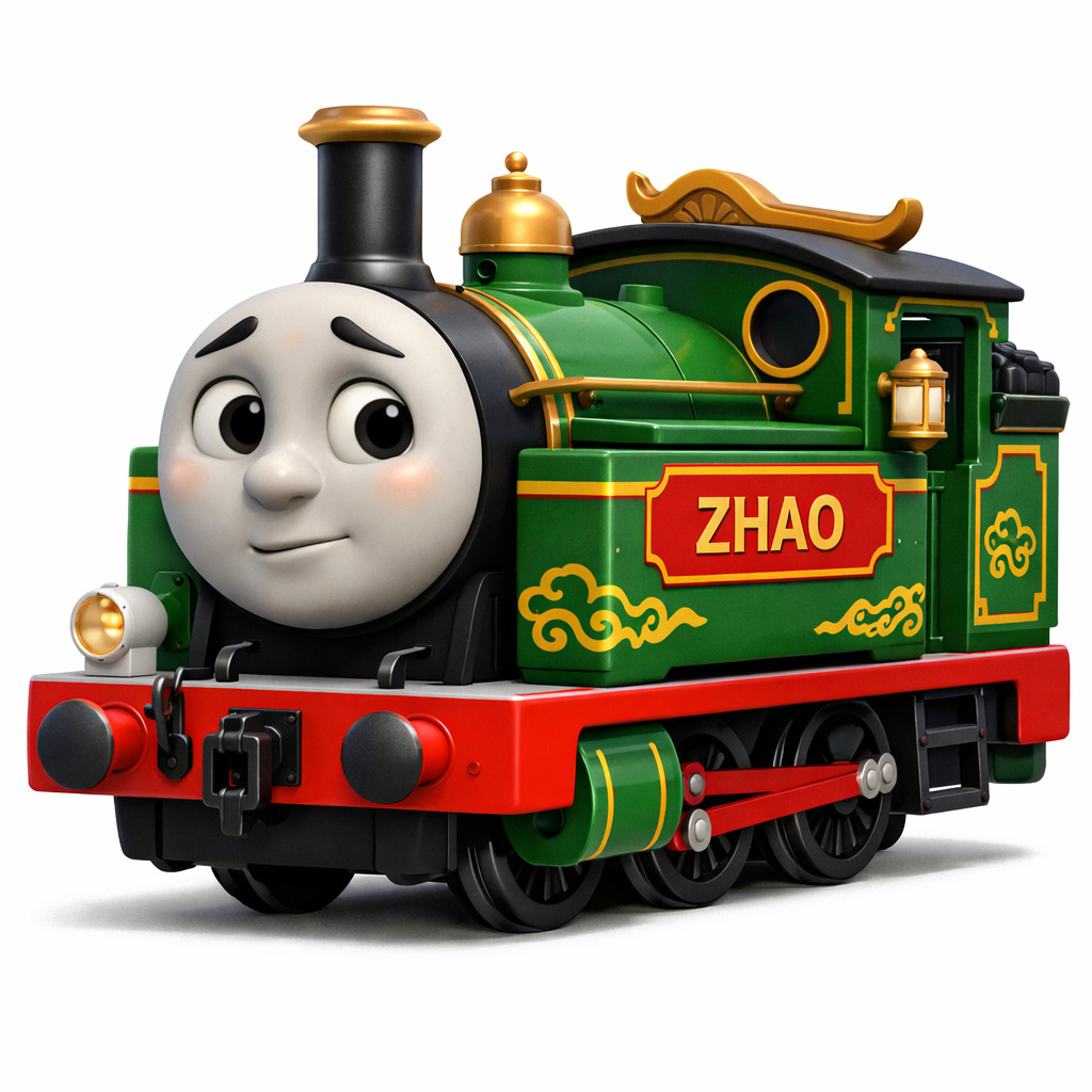 Oh, and I had to make up a train. We couldn’t find a good option for Z, so Z is for Zhao, who’s Yong Bao’s best friend. Zhao’s the Percy to Yong Bao’s Thomas. ChatGPT/Dall-E was happy to make a picture of him.